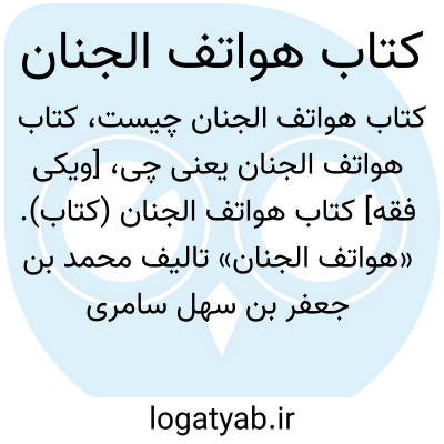 [ویکی فقه] کتاب هواتف الجنان (کتاب). «هواتف الجنان» تالیف محمد بن جعفر بن سهل سامری خرائطی (متوفی ۷۲۳ ق)، به بیان احادیثی در مورد اجنه و تایید وجود چنین موجوداتی از طریق روایات پرداخته است. این اثر یکی از معدود کتابهایی که در این موضوع خاص با تحقیق ابراهیم صالح منتشر شده است.