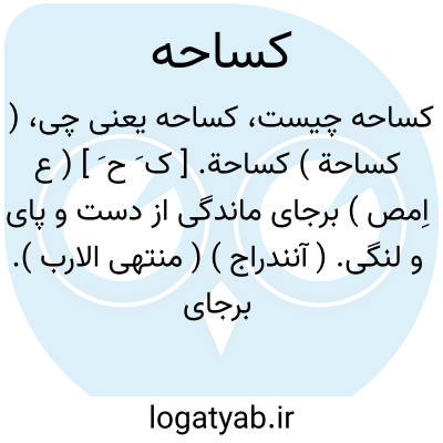 ( کساحة ) کساحة. [ ک َ ح َ ] ( ع اِمص ) برجای ماندگی از دست و پای و لنگی. ( آنندراج ) ( منتهی الارب ). برجای ماندن از دست و پای و اکثر در پای استعمال شود. ( از اقرب الموارد ). || بیماری است که آن را راشیتیسم گویند. ( یادداشت مؤلف ). || ( اِ ) برف روفته. ( آنندراج ) ( منتهی الارب ) ( ناظم الاطباء ). || خاک روبه. ( منتهی الارب ) ( ناظم الاطباء ) ( آنندراج ). خاک رفته. ( مهذب الاسماء ).