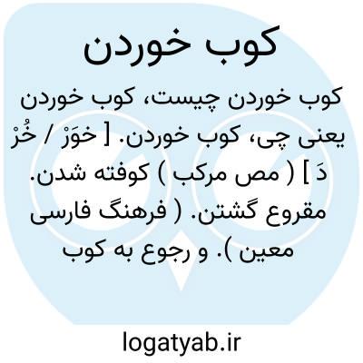 کوب خوردن. [ خوَرْ / خُرْ دَ ] ( مص مرکب ) کوفته شدن. مقروع گشتن. ( فرهنگ فارسی معین ). و رجوع به کوب شود. || ضرب خوردن. کتک خوردن. ( فرهنگ فارسی معین ):