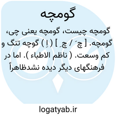 گومچه. [ چ َ / چ ِ ] ( اِ ) گوچه تنگ و کم وسعت. ( ناظم الاطباء ). اما در فرهنگهای دیگر دیده نشدظاهراً مصحف کویچه، کوچه باشد. رجوع به کوچه شود.