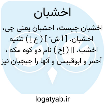 اخشبان. [ اَ ش َ ] ( ع اِ ) تثنیه اخشب. || ( اِخ ) نام دو کوه مکه، اَحمر و ابوقبیس و آنها را جبجبان نیز گویند. || نام دو کوه تحت عقبه منی. ( مراصدالاطلاع ).