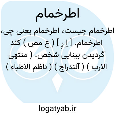 اطرخمام. [ اِ رِ ] ( ع مص ) کند گردیدن بینایی شخص. ( منتهی الارب ) ( آنندراج ) ( ناظم الاطباء ) ( از اقرب الموارد ). || سخت تاریک و سیاه شدن شب. ( منتهی الارب ) ( ناظم الاطباء ) ( آنندراج ). سیاه شدن شب. ( از اقرب الموارد ). || تکبر کردن و بزرگ منشی نمودن.( منتهی الارب ) ( آنندراج ) ( ناظم الاطباء ). گردنکشی کردن. ( زوزنی ). صاحب اقرب الموارد در ذیل اسم فاعل آن ( مطرخم ) معانی مضطجع ( بر بستر خوابیده ) و غضبان و متکبر و جز اینها را آورده است. رجوع به مطرخم شود.