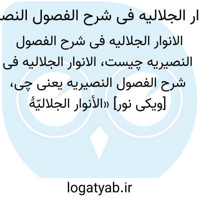 [ویکی فقه] الانوار الجلالیه فی شرح الفصول النصیریه (کتاب). الانوار الجلالیه فی شرح الفصول النصیریه، شرحی بر کتاب فصول نصیریه خواجه طوسی است که خود کتابی است فارسی در علم کلام.