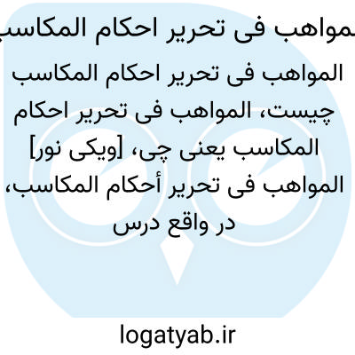 [ویکی فقه] المواهب فی تحریر احکام المکاسب (کتاب). کتاب« المواهب فی تحریر أحکام المکاسب»، در واقع درس خارج فقه آیت اللّه جعفر سبحانی است که توسط شاگردش حجة الإسلام سیف اللّه یعقوبی قمشه ای تقریر و تنظیم شده و در سال ۱۴۱۰ ق تحت اشراف خود ایشان به زیور طبع آراسته گردیده است. موضوع کتاب، مکاسب محرّمه بوده و به زبان عربی نوشته شده است.