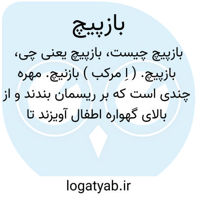 بازپیچ. ( اِ مرکب ) بازنیچ. مهره چندی است که بر ریسمان بندند و از بالای گهواره اطفال آویزند تا ایشان بدان بازی کنند و آنرا بعربی دأداءة گویند. ( برهان ) ( ناظم الاطباء ) ( انجمن آرا ) ( آنندراج ). مهره ای چند است که بر ریسمان بندند و از بالای گهواره آویزند که کودکان به آن بازی کنند و بعربی دوداة گویند اما در السامی فی الاسامی مسطور است که هی خشبات یضم بعضها الی بعض و یوضع علیها شی اما من خشب عریض او غیره من اللباس لیکون للصبی بمنزلةالمهد. ( سروری ):