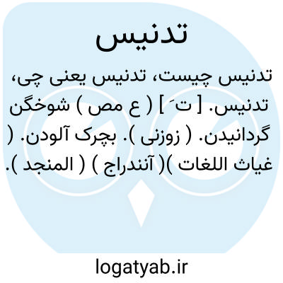(تَ ) [ ع. ] ۱ - (مص م. ) شوخگین کردن، به چرک آلودن، ریمناک کردن. ۲ - (اِمص. ) شوخگینی، چرکینی، ج. تدنیسات.