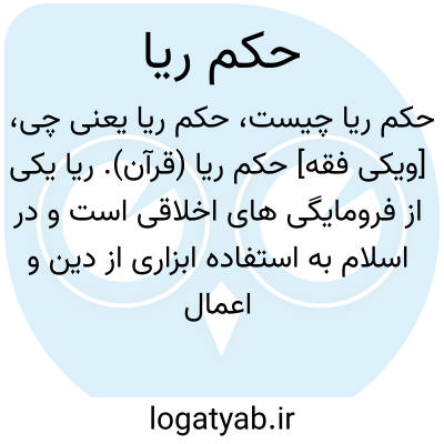 [ویکی فقه] حکم ریا (قرآن). ریا یکی از فرومایگی های اخلاقی است و در اسلام به استفاده ابزاری از دین و اعمال دینی برای رسیدن به مقاصد دنیوی گفته می شود. فرد ریاکار تلاش می کند با به رخ کشیدن کار خود، مورد تشویق دیگران قرار گیرد.