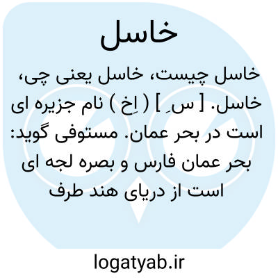 خاسل. [ س ِ ] ( اِخ ) نام جزیره ای است در بحر عمان. مستوفی گوید: بحر عمان فارس و بصره لجه ای است از دریای هند طرف شرقیش بولایت فارس برمیگذرد و تا دیر میرسد و طرف غربی تا دیار عرب و یمن وعمان و بادیه است و شمال ولایات عراق عرب و خوزستان و جنوبی بحر هند و عرض این لجه تا بحر هند رسیدن صد و هفتاد فرسنگ نهاده اند و عمقش بر ممر کشتی هفتاد باع و هشتاد باع گفته اند و از اول رسیدن آفتاب ببرج سنبله تا شش ماه مواج باشد و بعد از آن ساکن گردد و جزر و مد آن در شطالعرب تا دیه مطاره بیست فرسنگ است که بحر بالا می آید و سقی باغستان بصره بر آن آب است و از بصره در این بحر بوقت مد توان رفت که آب بالا آمده باشد و الا کشتی در زمین نشیند. در این بحر جزایر بسیار است و آنچه مشهور و از حساب ملک ایران شمارند مردم نشینش هرموز و قیس و بحرین و خارک و خاسل و کند و اناشاک و لادر و ارموس و ابرکافان و غیر آن. ( از نزهةالقلوب چ لیدن ص 234 ).