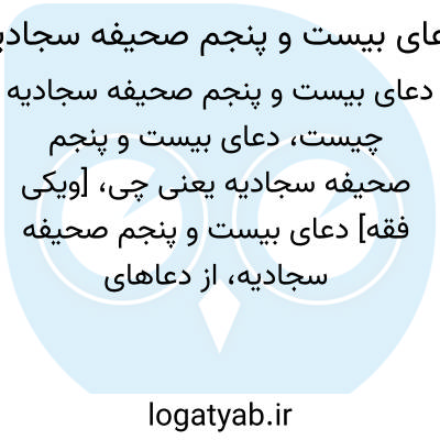 [ویکی شیعه] دعای بیست و پنجم صحیفه سجادیه، از دعاهای صحیفه سجادیه امام سجاد (ع). این دعا در ۱۳ فراز تنظیم شده و موضوع اصلی آن دعا برای فرزندان است.