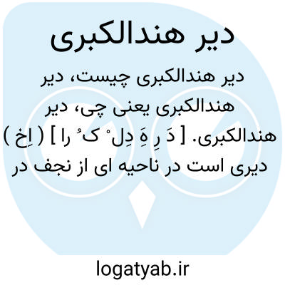 دیر هندالکبری. [ دَ رِ هَِ دِل ْ ک ُ را ] ( اِخ ) دیری است در ناحیه ای از نجف در حیره که آن را هند دختر حارث بن عمربن حجر اکل المرار کندی ساخته است و هارون الرشید به اتفاق یحیی بن خالد هنگامی که بحیره آمد از این دیر دیدن کرد. ( از معجم البلدان ).