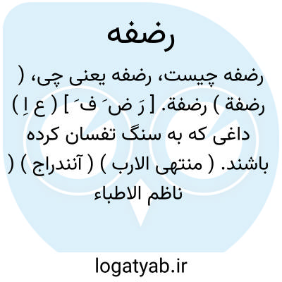 ( رضفة ) رضفة. [ رَ ض َ ف َ ] ( ع اِ ) داغی که به سنگ تفسان کرده باشند. ( منتهی الارب ) ( آنندراج ) ( ناظم الاطباء ). داغی که به سنگ تافته کنند. ج، رَضَف، رَضَفات. ( از اقرب الموارد ). || یکی رَضْف، بمعنی سنگهای تفسیده که شیر را به وی در جوش آرند. و فی المثل: خذ من الرضفه ما علیها. ( از منتهی الارب ). سنگ تافته. ج، رَضْف. ( مهذب الاسماء ). و رجوع به رَضْف شود.