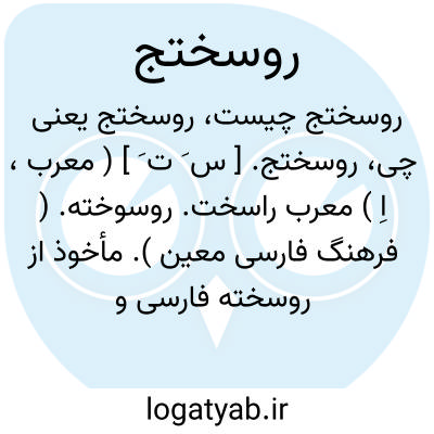 روسختج. [ س َ ت َ ] ( معرب، اِ ) معرب راسخت. روسوخته. ( فرهنگ فارسی معین ). مأخوذ از روسخته فارسی و بمعنی آن. ( فرهنگ نفیسی ). مس سوخته. ( برهان قاطع ) ( از دزی ج 1 ص 569 ) ( لغت محلی شوشتر ). بعربی نحاس محرق گویند. بهترین آن مصری بود گرم است در دوم. ( برهان قاطع ). طبیعت آن گرم است در سوم. ( لغت محلی شوشتر ). حدیدالحرکوش. اکسید مس راگویند که از قدیم بعنوان یکی از داروهای اصلی چشم خصوصاً تراخم استعمال میشده است. ( فرهنگ فارسی معین ).بترکی راستق گویند. ( از فرهنگ شعوری ). و رجوع به راسخت و روسوخته و نحاس محرق و حدیدالحرکوش و تحفه حکیم مؤمن و قانون ابوعلی سینا کتاب ثالث ص 65 شود.