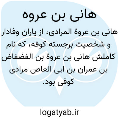 [ویکی شیعه] هانی بن عروة. هانی بن عروة بن غران مرادی (شهادت در ۸ ذی حجه ۶۰ق)، از بزرگان کوفه و یاران خاص امام علی(ع). وی در جنگ جمل و صفّین حضور داشت. هانی از ارکان قیام حُجْر بن عَدی در برابر زیاد بن ابیه، و از مخالفان بیعت با یزید به شمار می رفت. خانهٔ او از زمان ورود عبیدالله بن زیاد به کوفه مرکز فعالیت های سیاسی و نظامی بود، وی نقش مهمی در قیام مسلم بن عقیل داشت. در هشتم ذی حجهٔ سال۶۰ق، پس از شهادت مسلم بن عقیل، و به دستور عبیدالله بن زیاد، سر از بدنش جدا کردند. خبر شهادت او در میانهٔ راه کوفه، در منزلگاه زرود به امام حسین(ع) رسید. امام بر مرگ او گریست و آیهٔ استرجاع را خواند و برایش درخواست رحمت کرد. هانی را در کنار دارالامارهٔ کوفه به خاک سپردند. آستانهٔ هانی بن عروه هم اکنون از زیارتگاه های شیعیان است.