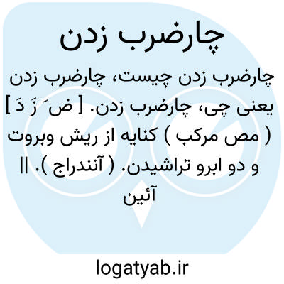 چارضرب زدن. [ ض َ زَ دَ ] ( مص مرکب ) کنایه از ریش وبروت و دو ابرو تراشیدن. ( آنندراج ). || آئین قلندران نامقید است، گویند فلانی چارضرب زده است. ( آنندراج ). و رجوع به چهارضرب زدن شود.