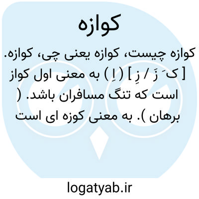 کوازه. [ ک َ زَ / زِ ] ( اِ ) به معنی اول کواز است که تنگ مسافران باشد. ( برهان ). به معنی کوزه ای است سرتنگ که مسافران برای خوردن آب با خود دارند. ( آنندراج ). تنگ آبخوری گردن کوتاه مسافران. ( ناظم الاطباء ). مصحف کرازه است. ( حاشیه برهان چ معین ). و رجوع به کرازه و کراز شود. || کشکول چوبین. ( انجمن آرا ). کچکول چوبین. ( آنندراج ):