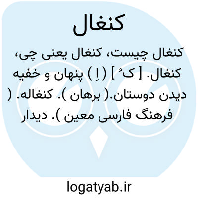 کنغال. [ ک ُ ] ( اِ ) پنهان و خفیه دیدن دوستان.( برهان ). کنغاله. ( فرهنگ فارسی معین ). دیدار دوستان در پنهانی و به طور خفیه. ( ناظم الاطباء ). ( از: کنک + آل ) جماش. آنکه پنهانک دوست را بیند. ( یادداشت به خط مرحوم دهخدا ). به این معنی ظاهراً مصحف کیغال است که در لغت فرس آمده. رجوع به کنغاله شود. مؤلف فرهنگ رشیدی «کیغال » را مصحف «کنغال » می داند. ( از حاشیه برهان چ معین ). و رجوع به ماده بعد و کیغال شود.