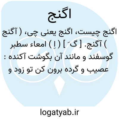 ( آگنج ) ۱ - ( صفت ) در کلمات مرکب بمعنی انباشته و پر کرده آید: جگر آگنج ( جگر آکند ) ۲- ( اسم ) رود. ستبر گوسفند که از گوشت پخته یا خوراکهای دیگر آگنده باشد جگر آگند جرغند.