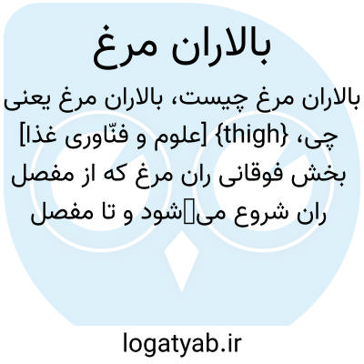 {thigh} [علوم و فنّاوری غذا] بخش فوقانی ران مرغ که از مفصل ران شروع میشود و تا مفصل زانو ادامه دارد