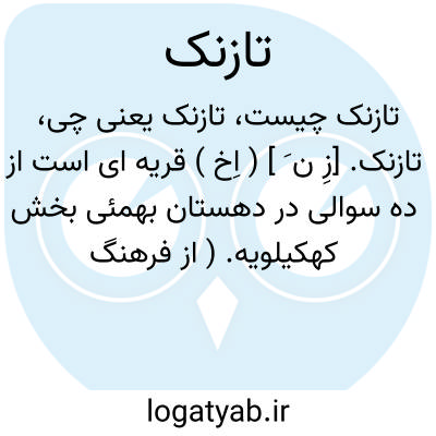 لغت نامه دهخدا تازنک. [زِ ن َ ] ( اِخ ) قریه ای است از ده سوالی در دهستان بهمئی بخش کهکیلویه. ( از فرهنگ جغرافیائی ایران ج 6 ).