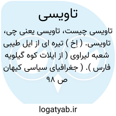 تاویسی. ( اِخ ) تیره ای از ایل طیبی شعبه لیراوی ( از ایلات کوه گیلویه فارس ). ( جغرافیای سیاسی کیهان ص 98 ).