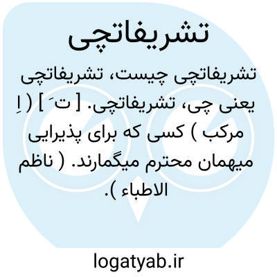 لغت نامه دهخدا تشریفاتچی. [ ت َ ] ( اِ مرکب ) کسی که برای پذیرایی میهمان محترم میگمارند. ( ناظم الاطباء ). مهماندار.