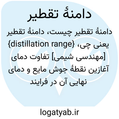 {distillation range} [مهندسی شیمی] تفاوت دمای آغازین نقطۀ جوش مایع و دمای نهایی آن در فرایند تقطیر