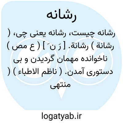 لغت نامه دهخدا ( رشانة ) رشانة. [ رَ ن َ ] ( ع مص ) ناخوانده مهمان گردیدن و بی دستوری آمدن. ( ناظم الاطباء ) ( منتهی الارب ).