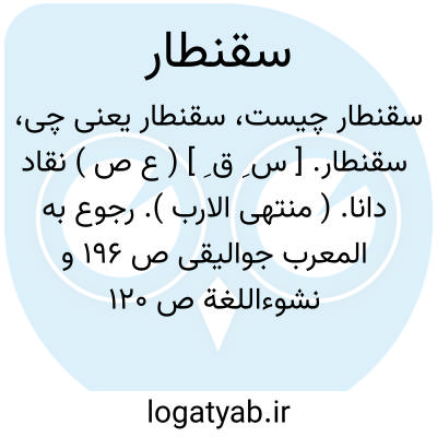 سقنطار. [ س ِ ق ِ ] ( ع ص ) نقاد دانا. ( منتهی الارب ). رجوع به المعرب جوالیقی ص 196 و نشوءاللغة ص 120 شود.