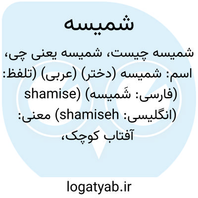 اسم: شمیسه (دختر) (عربی) (تلفظ: shamise) (فارسی: شَمیسه) (انگلیسی: shamiseh)