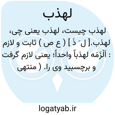 لهذب.[ ل َ ذَ ] ( ع ص ) ثابت و لازم: اَلْزَمَه لهذباً واحداً؛ یعنی لازم گرفت و برچسبید وی را. ( منتهی الارب ).