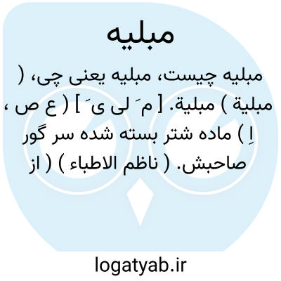 لغت نامه دهخدا ( مبلیة ) مبلیة. [ م َ لی ی َ ] ( ع ص، اِ ) ماده شتر بسته شده سر گور صاحبش. ( ناظم الاطباء ) ( از فرهنگ جانسون ).