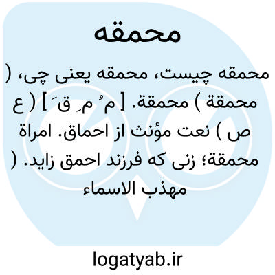 ( محمقة ) محمقة. [ م ُ م ِ ق َ ] ( ع ص ) نعت مؤنث از احماق. امراة محمقة؛ زنی که فرزند احمق زاید. ( مهذب الاسماء ).