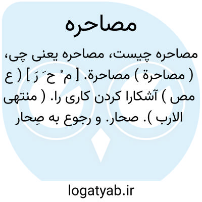( مصاحرة ) مصاحرة. [ م ُ ح َ رَ ] ( ع مص ) آشکارا کردن کاری را. ( منتهی الارب ). صحار. و رجوع به صِحار شود.