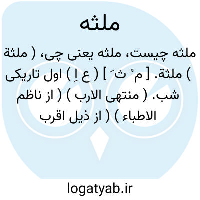 ( ملثة ) ملثة. [ م ُ ث َ ] ( ع اِ ) اول تاریکی شب. ( منتهی الارب ) ( از ناظم الاطباء ) ( از ذیل اقرب الموارد ).