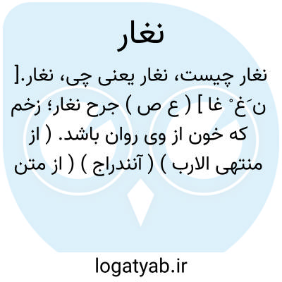 نغار.[ ن َغ ْ غا ] ( ع ص ) جرح نغار؛ زخم که خون از وی روان باشد. ( از منتهی الارب ) ( آنندراج ) ( از متن اللغة ).
