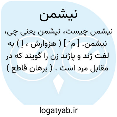 نیشمن. [ م َ ] ( هزوارش، اِ ) به لغت ژند و پاژند زن را گویند که در مقابل مرد است. ( برهان قاطع ) ( آنندراج ).