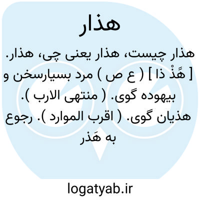 هذار. [ هََذْ ذا ] ( ع ص ) مرد بسیارسخن و بیهوده گوی. ( منتهی الارب ). هذیان گوی. ( اقرب الموارد ). رجوع به هَذر شود.