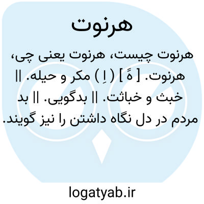 هرنوت. [ هََ ] ( اِ ) مکر و حیله. || خبث و خباثت. || بدگویی. || بد مردم در دل نگاه داشتن را نیز گویند. ( برهان ).