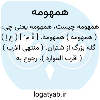 لغت نامه دهخدا ( همهومة ) همهومة. [ هَُ م َ ] ( ع اِ ) گله بزرگ از شتران. ( منتهی الارب ) ( اقرب الموارد ). رجوع به همهامة شود.