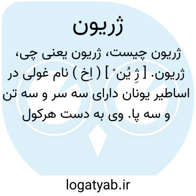 ژریون. [ ژِ یُن ْ ] ( اِخ ) نام غولی در اساطیر یونان دارای سه سر و سه تن و سه پا. وی به دست هرکول به قتل رسید.