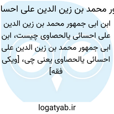 [ویکی فقه] ابن اَبی جُمْهور، محمّد بن زین الدّین علی بن ابراهیم بن حسن ابن ابراهیم بن ابی جمهور اَحْسائی یالحَصْاوی (زنده در۹۰۴ق /۱۴۹۹م )، فقیه، محدّث و متکلم ِ صوفی مشرب ِ شیعی امامی.