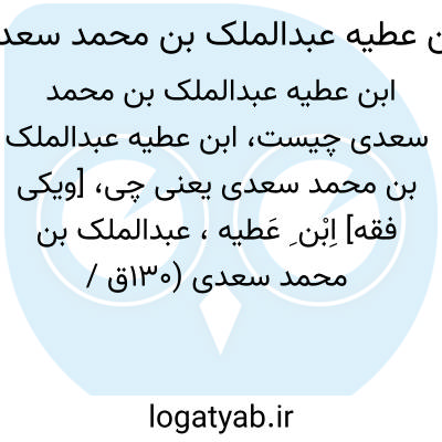[ویکی فقه] اِبْن ِ عَطیه، عبدالملک بن محمد سعدی (۱۳۰ق / ۷۴۸م )، فرمانده سپاه اموی، والی مکه و مدینه در دوران مروان دوم، آخرین خلیفه اموی است.