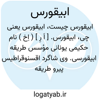 فیلسوف یونانی موسس طریقه ابیقوری ( و. کارزتس ۳۴۱ ق. م. - ف. ۲۷٠ یا ۲۷۲ ق. م. ) وی شاگرد اقسنوقراطیس پیرو ذیمقراطیس بود. او لذت را غایت مطلوب بشر میدانست و میگفت: لذت خیر مطلق است و همه افعال ما باید متوجه کسب آن باشد ولی ازین لذت قصد او لذات شهوانی و پست نبود بلکه نظرش به لذات روحانی و کسب فضایل معطوف بود.