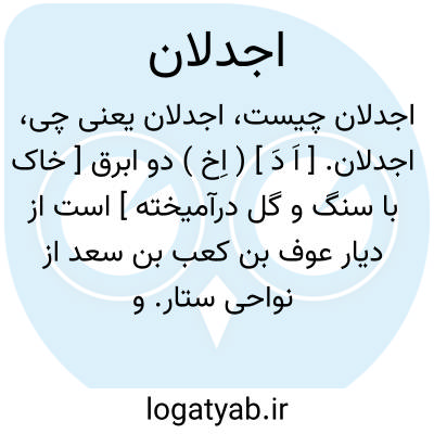 اجدلان. [ اَ دَ ] ( اِخ ) دو ابرق [ خاک با سنگ و گل درآمیخته ] است از دیار عوف بن کعب بن سعد از نواحی ستار. و آن وادئی است امروءالقیس بن زید مناةبن تمیم را. ( معجم البلدان ).