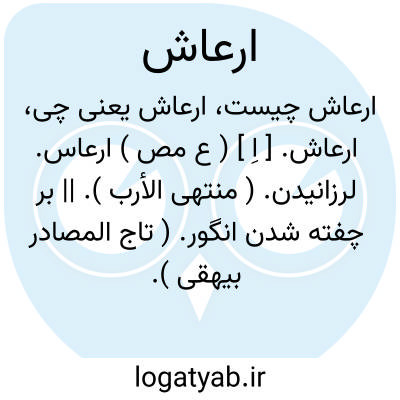 لغت نامه دهخدا ارعاش. [ اِ ] ( ع مص ) ارعاس. لرزانیدن. ( منتهی الأرب ). || بر چفته شدن انگور. ( تاج المصادر بیهقی ).