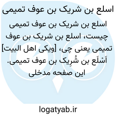 [ویکی اهل البیت] اَسْلَع بن شُرِیک بن عوف تمیمی. این صفحه مدخلی از دائرة المعارف قرآن کریم است