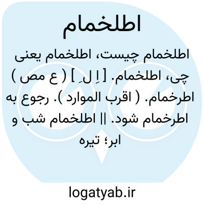 اطلخمام. [ اِ ل ِ ] ( ع مص ) اطرخمام. ( اقرب الموارد ). رجوع به اطرخمام شود. || اطلخمام شب و ابر؛ تیره شدن شب و متراکم گشتن ابر. ( از متن اللغة ). تاریک شدن شب. || کند شدن بینایی. ( منتهی الارب ) ( آنندراج ) ( ناظم الاطباء ). || اطلخمام امر؛ شدت یافتن آن. || اطلخمام مرد؛ تکبر کردن وی. ( از متن اللغة ). گردن کشی کردن. ( لغت خطی ).