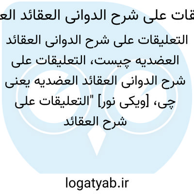 [ویکی نور] "التعلیقات علی شرح العقائد العضدیة" اثر سید جمال الدین اسید آّبادی 1217ش معروف به افغانی است که به عنوان تعلیقه بر کتاب العقائد العضدیه که محقق دوانی به عنوان شرح بر کتاب العقائد العضدیه اثر عضدالدین ایجی نوشته است، صورت پذیرفته است.