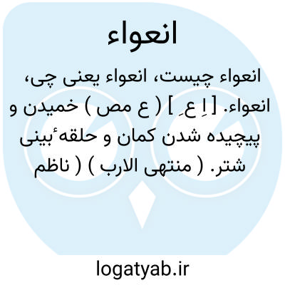 انعواء. [ اِ ع ِ ] ( ع مص ) خمیدن و پیچیده شدن کمان و حلقه ٔبینی شتر. ( منتهی الارب ) ( ناظم الاطباء ) ( از آنندراج ). انعطاف. ( از اقرب الموارد ). || و نیز مطاوعه عوی یعوی عَیَّاً کند در همه معانی آن. ( از ناظم الاطباء ). رجوع به عی و عواء و عوة و عویّة شود.