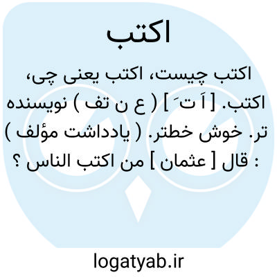 اکتب. [ اَ ت َ ] ( ع ن تف ) نویسنده تر. خوش خطتر. ( یادداشت مؤلف ): قال [ عثمان ] من اکتب الناس ؟ قالوا کاتب رسول اﷲزیدبن ثابت. ( کتاب المصاحف ابوبکر سجستانی ). و مارأیت خادماً اعقل منه و لا اکتب یداً. ( معجم الادباء یاقوت ج 2 ص 39 ). ماقال ( اما بعد ) احد علی وجه الارض اکتب من جدک و کان ابوک اکتب منه و انت اکتب من ابیک. ( معجم الادباء یاقوت ج 2 ص 80 ). ورد ابوطالب الجراص الکاتب و لم یکن فی عصره اکتب ولا افضل منه. ( الفخری ص 34 ).